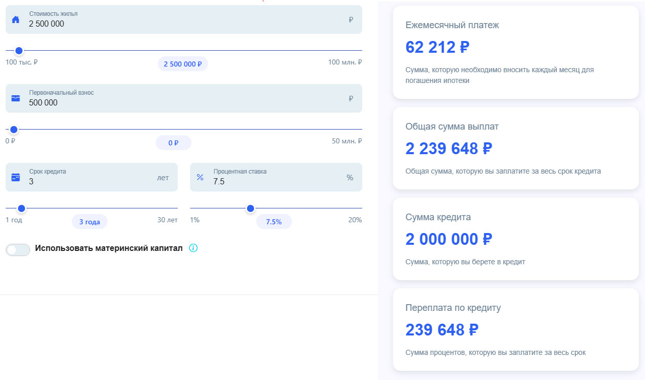 Ипотечный калькулятор